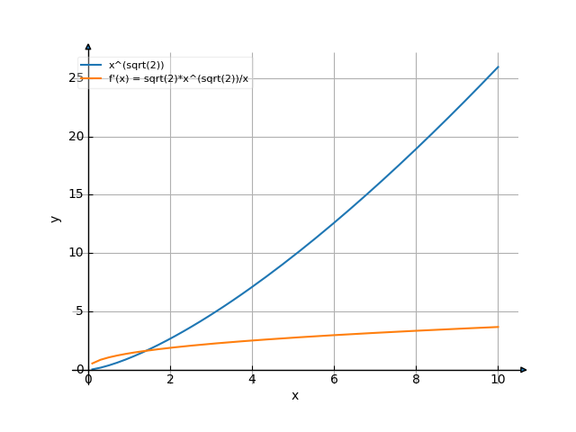 x ![Найти производную y' = f'(x) = x^sqrt(2) (х в степени квадратный корень из (2)) - функции. Найдём значение производной функции в точке. [Есть ответ!] Производная x^sqrt(2) /media/krcore-image-pods/hash/derivative/c/5f/e638f25c0bfe5b83a352a0a817274.png](/media/krcore-image-pods/hash/derivative/c/5f/e638f25c0bfe5b83a352a0a817274.png)