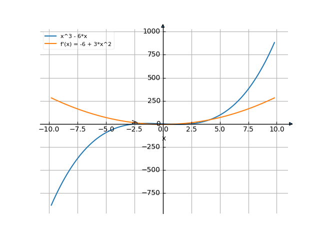 ![Найти производную y' = f'(x) = x^3-6*x (х в кубе минус 6 умножить на х) - функции. Найдём значение производной функции в точке. [Есть ответ!] Производная x^3-6*x /media/krcore-image-pods/hash/derivative/2/b7/f239e3e37b242f3c4b6a63b3ec23d.png](/media/krcore-image-pods/hash/derivative/2/b7/f239e3e37b242f3c4b6a63b3ec23d.png)