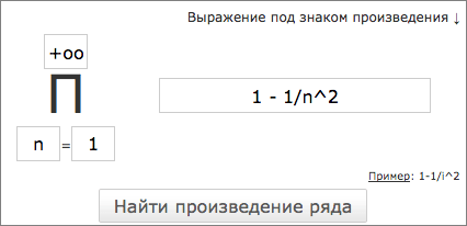 Чтобы посчитать произведение ряда онлайн выполните следующие действия: